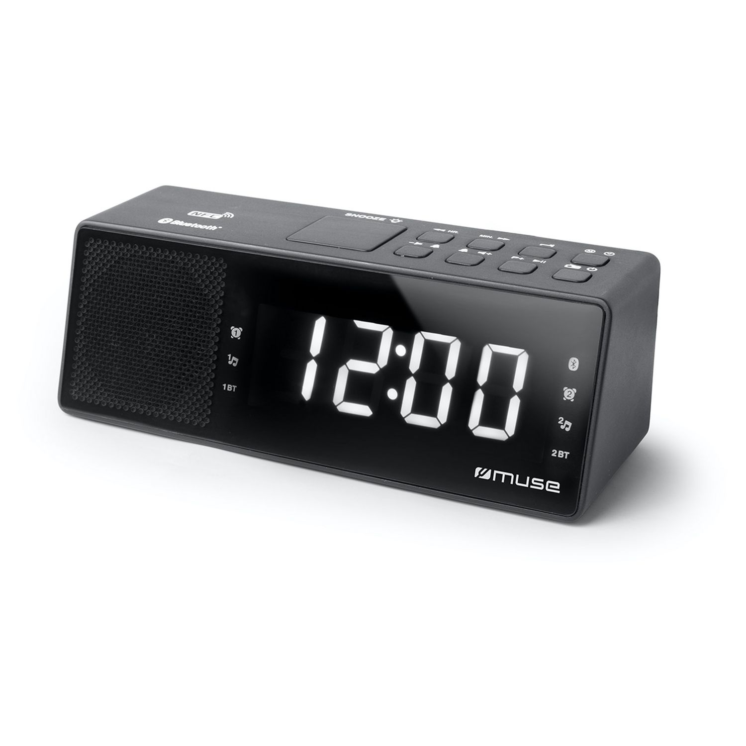 Tuner FM - Afficheur LED extra large - Réglage de la luminosité - Double alarme - Port USB de chargement - Entrée AUX - Fonctionne sur secteur avec piles de sauvegarde