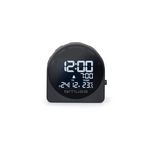 Équipé d'un écran LCD rétroéclairé blanc, ce réveil propose un affichage simultané de l'heure (12h/24h), de la date, de la température et du statut de l'alarme. La fonction de veilleuse intégrée facilite la consultation nocturne sans éblouissement.