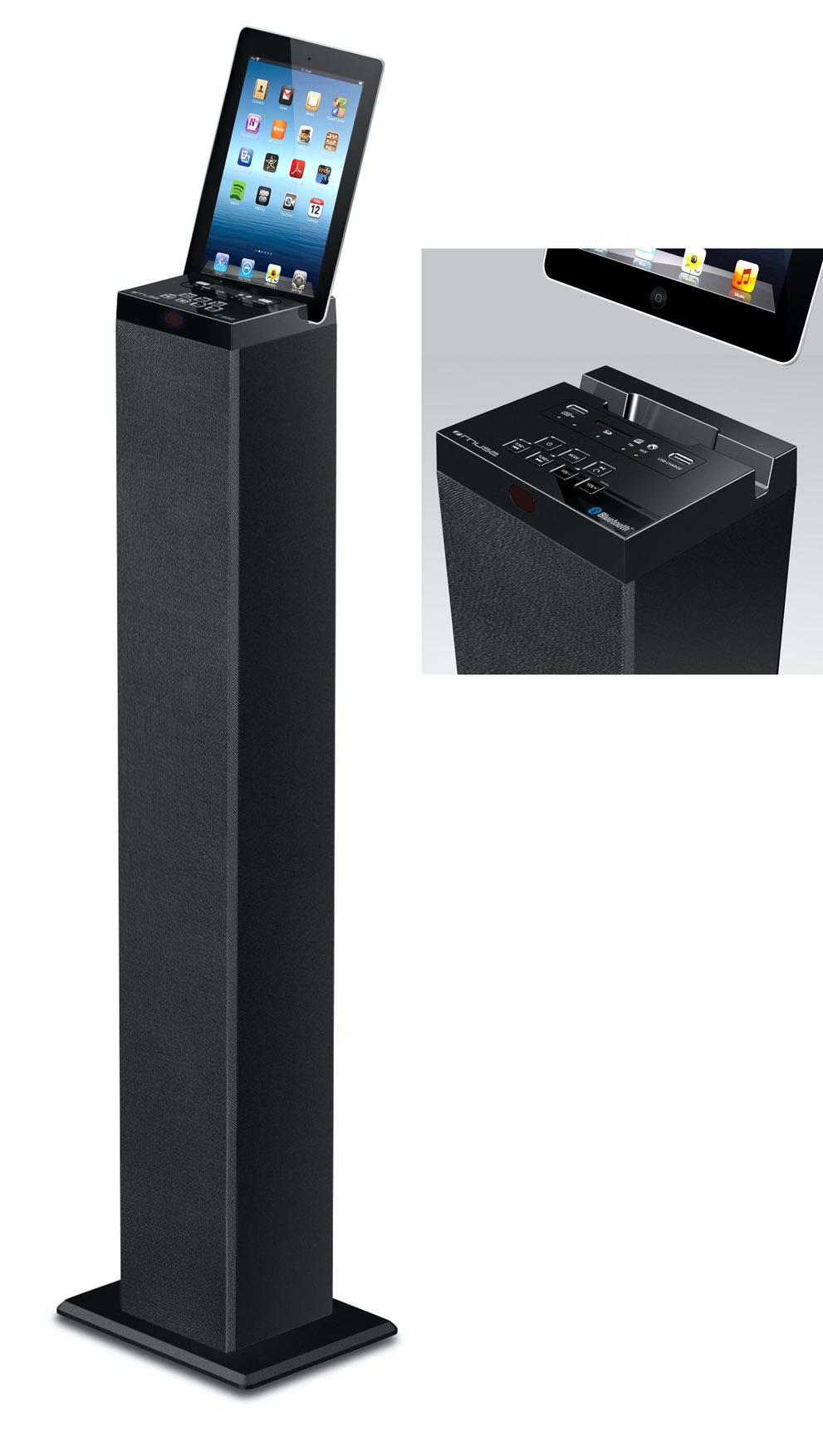 Muse M1250BT Tour de son Muse M1250BT doté d'un Haut-parleur Bluetooth avec radio PLL FM, 20 stations mémorisables. Compatible Bluetooth 3.0 avec iPhone, Téléphone portable, ou ordinateur. Système 2.1 canaux avec caisson de basse intégré. Lecteur de carte SD/SDHC/MMC. Prises auxiliaires (3.5mm + L/R