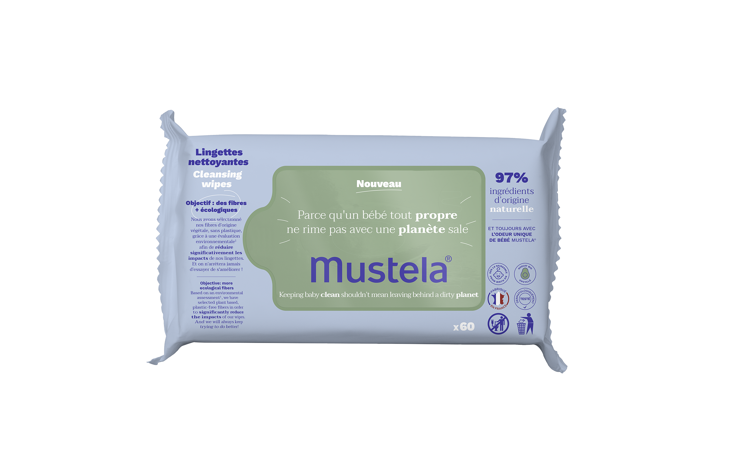 Parce qu'un bébé tout propre ne rime pas avec une planète toute sale, nous avons sélectionné nos fibres d’origine végétale grâce à une évaluation environnementale (Analyse de Cycle de Vie) afin de réduire significativement les impacts de nos lingettes. Plus écologiques, ces fibres biodégradables, compostables et 0% plastique, sont produites à partir de pulpe de bois, provenant de forêts gérées de façon durable. Et on n’arrêtera jamais d’essayer de s'améliorer !