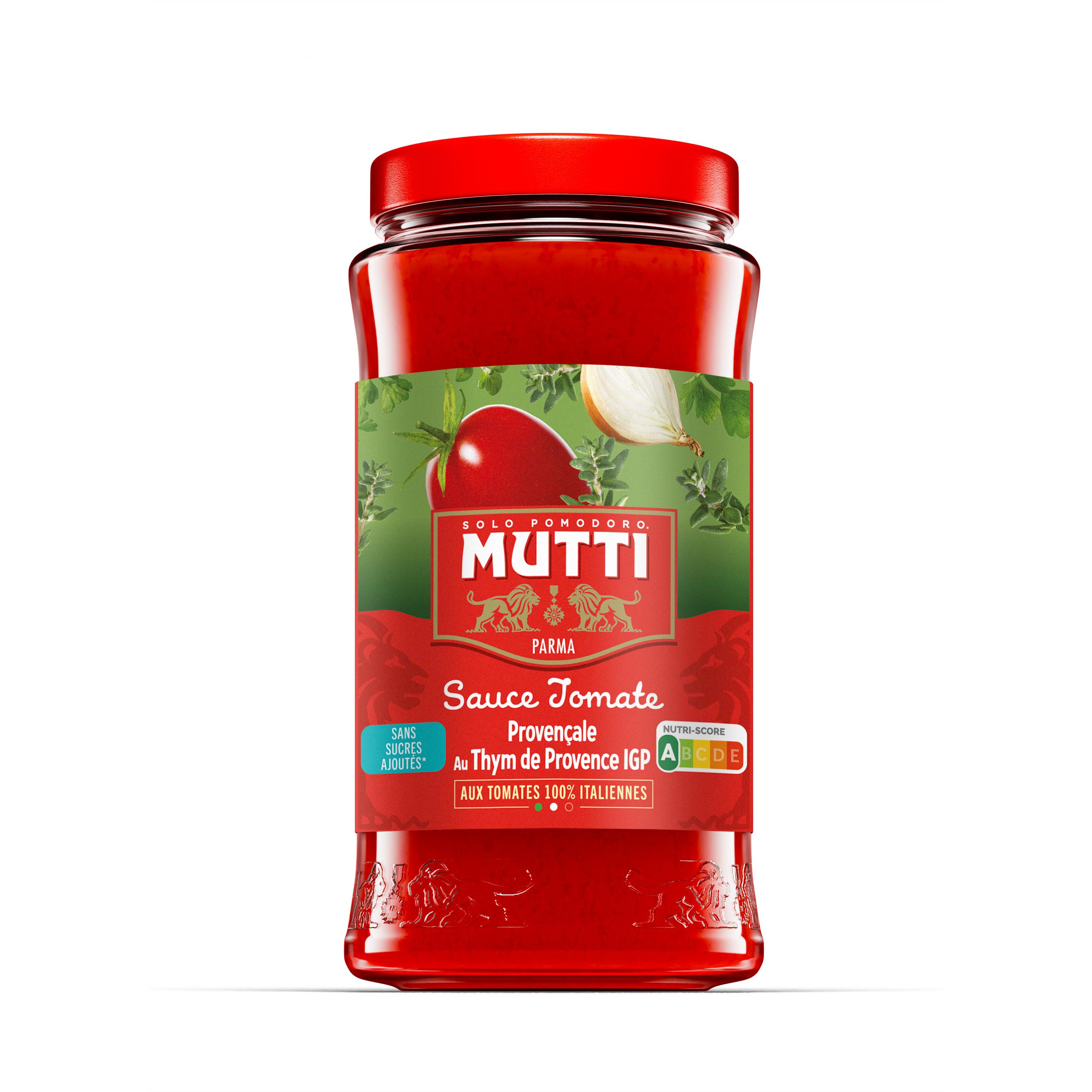 La sauce tomates Provençale au Thym de Provence IGP Mutti est élaborée à base de la célèbre Polpa Mutti, obtenue avec des tomates cultivées, mûries et transformées sous le soleil de nos champs en Italie. La Polpa est associée à des carottes, de l’oignon, de l’huile d’olive, des herbes de Provences et au Thym IGP de Provence, ingrédient de qualité premium pour un maximum de saveur. La sauce Provençale Mutti est notée A par le Nutri-Score et est sans sucres ajoutés.
