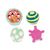 Mâchouille autant que tu le désires ! Chaque balle est différente, elles offrent toutes une sensation unique ! Quatre balles uniques et colorées avec différents motifs et couleurs. Fais-les rebondir, frappe-les, serre-les, fais-les rouler ou poursuis-les ! Un méli-mélo de boules et de formes amusantes: La balle avec des pointes est parfaite comme anneau de dentition pour ceux qui ont besoin de mâchouiller. La balle perforée est parfaite pour les petites mains qui aiment saisir, elle contient une bille hochet à l'intérieur. La balle avec du relief s'allume lorsque tu la lances et qu'elle rebondit. La balle tourbillonnante fait un son lorsqu'on la presse.