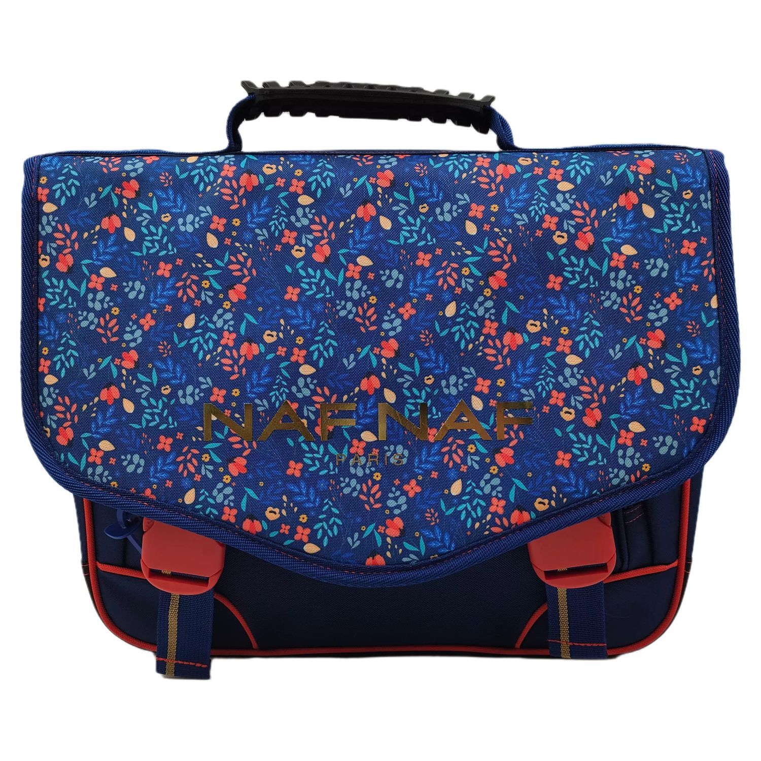 CARTABLE 38CM POLYESTER NAF NAF 600D 2 COMPARTIMENTS + 1 POCHE FERMETURE ZIP SIMPLE, BANDES REFLECHISSANTES, DOUBLE TUCKS