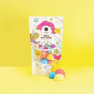 Ce sachet de boule de bains en forme de soucoupes permet de faire 7 bains colorés : 2 bains bleus, 3 bains rouges, 2 bains jaunes. Formulé spécialement pour les enfants, respecte leur peau sensible. Propriétés apaisantes et hydratantes. Légèrement parfumées, ces petites boules de bain colorent l'eau pour un road trip dans le cosmos. Testé dermatologiquement.