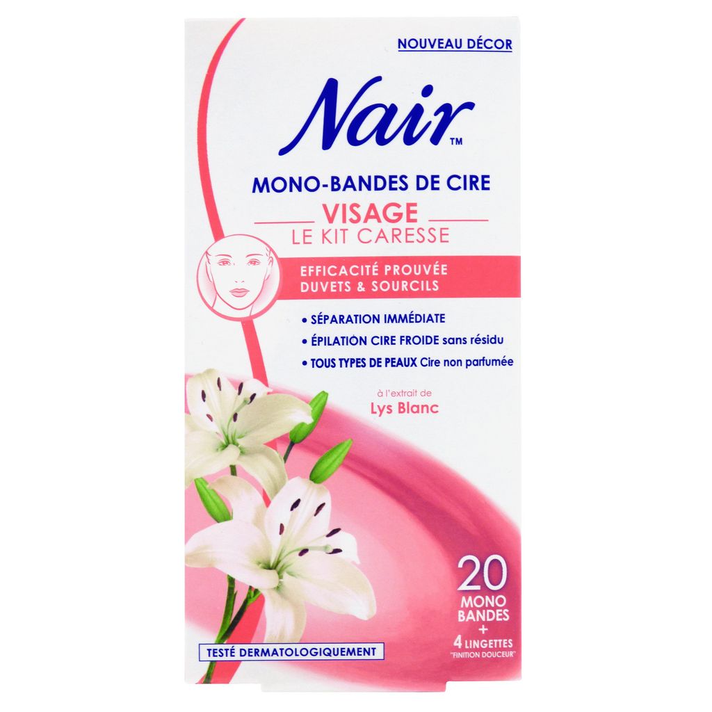 Des bandes de cire froide prêtes à l'emploi (plus besoin de frotter. Il suffit de retirer le film transparent et d'appliquer directement sur le visage la bande avec la cire.