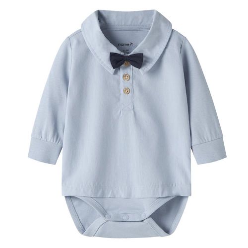 Optez pour ce body Name it !- Coloris : Bleu- Composition : 100% coton biologique- Avec nœud papillon- Manches longues
