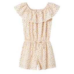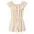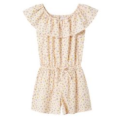 Craquez pour la combi-short de la marque NAME IT !Coloris : BlancCol rond Imprimé à fleursManches courtes Taille élastique Volant sur la poitrine Composition : 100% Polyester