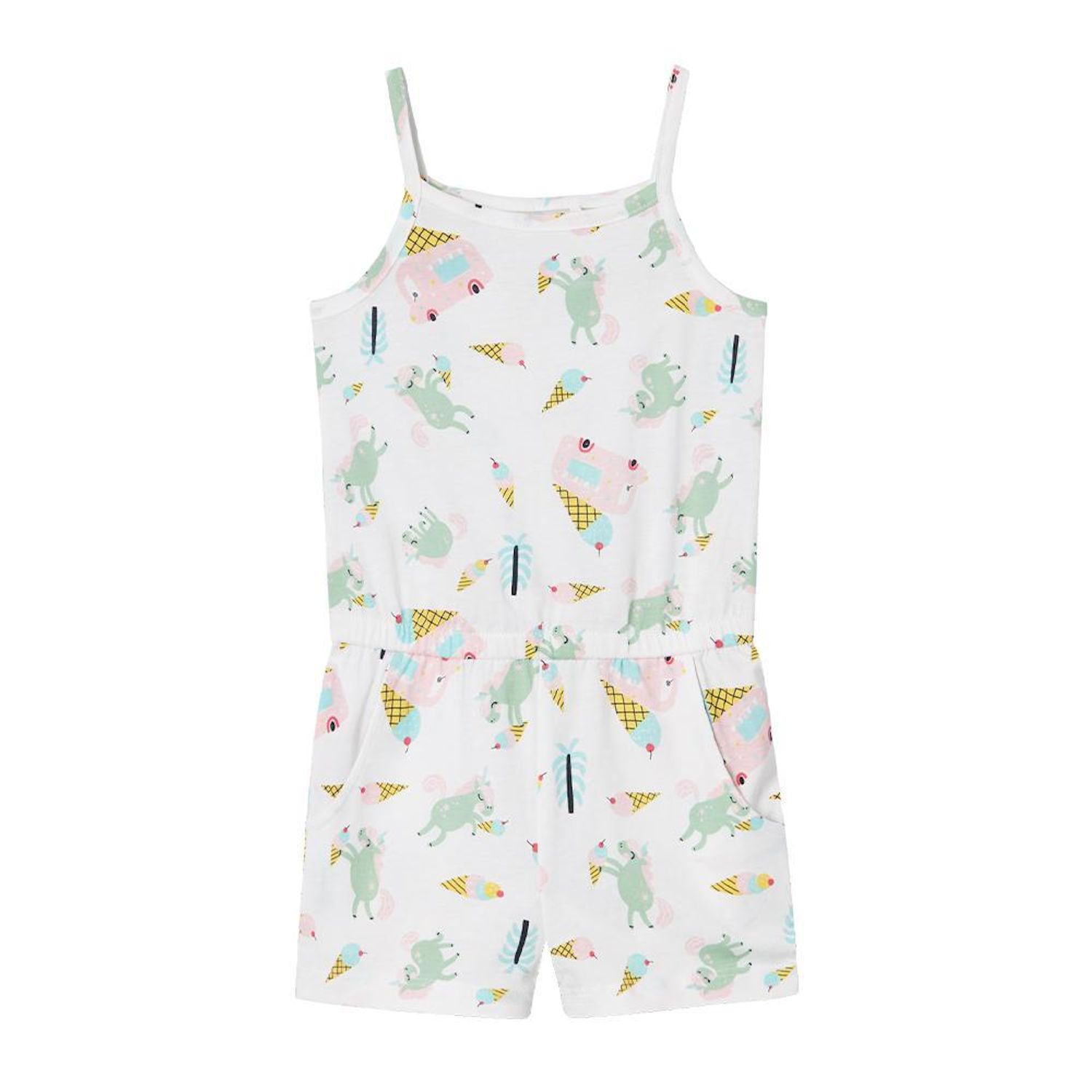 Optez pour cette combishort de la marque Name It- Coloris : Blanc- Col rond- Sans manches- Composition : 100% Coton- Motifs imprimés