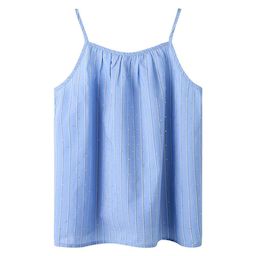 Optez pour ce débardeur Name it à prix bas !Coloris : Bleu Bretelles finesDesign fluideRayures verticalesSubtils refletsSans manchesCol rond70% coton, 30% polyester