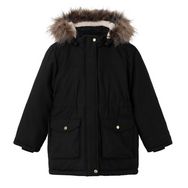 Optez pour cette doudoune Name it Coloris : NoirManches longuesCol montantComposition : 100% PolyesterCapuche détachable en fausse fourrure beige2 poches latérales à rabat et pressionTaille et extrémité des manches resserrées