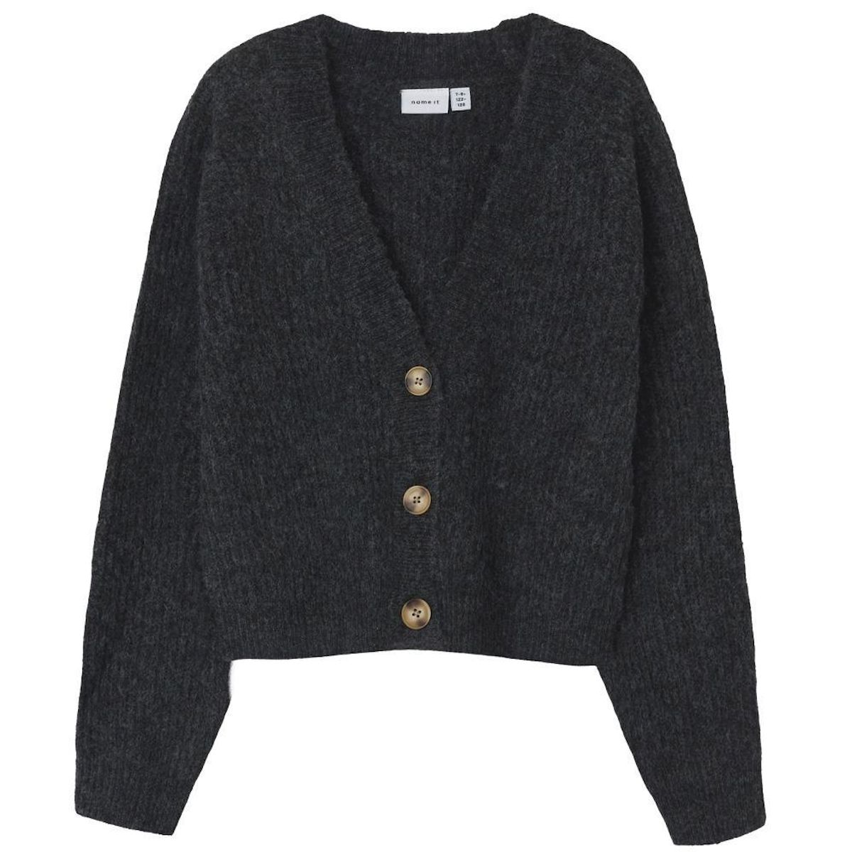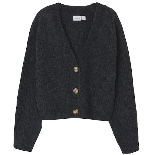 Optez pour ce gilet Name it à prix bas !- Coloris : Gris- Col V- Manches longues- Composition : 50% Polyester recyclé, 29% Polyester, 13% Acrylique, 5% Laine, 3% Élasthanne