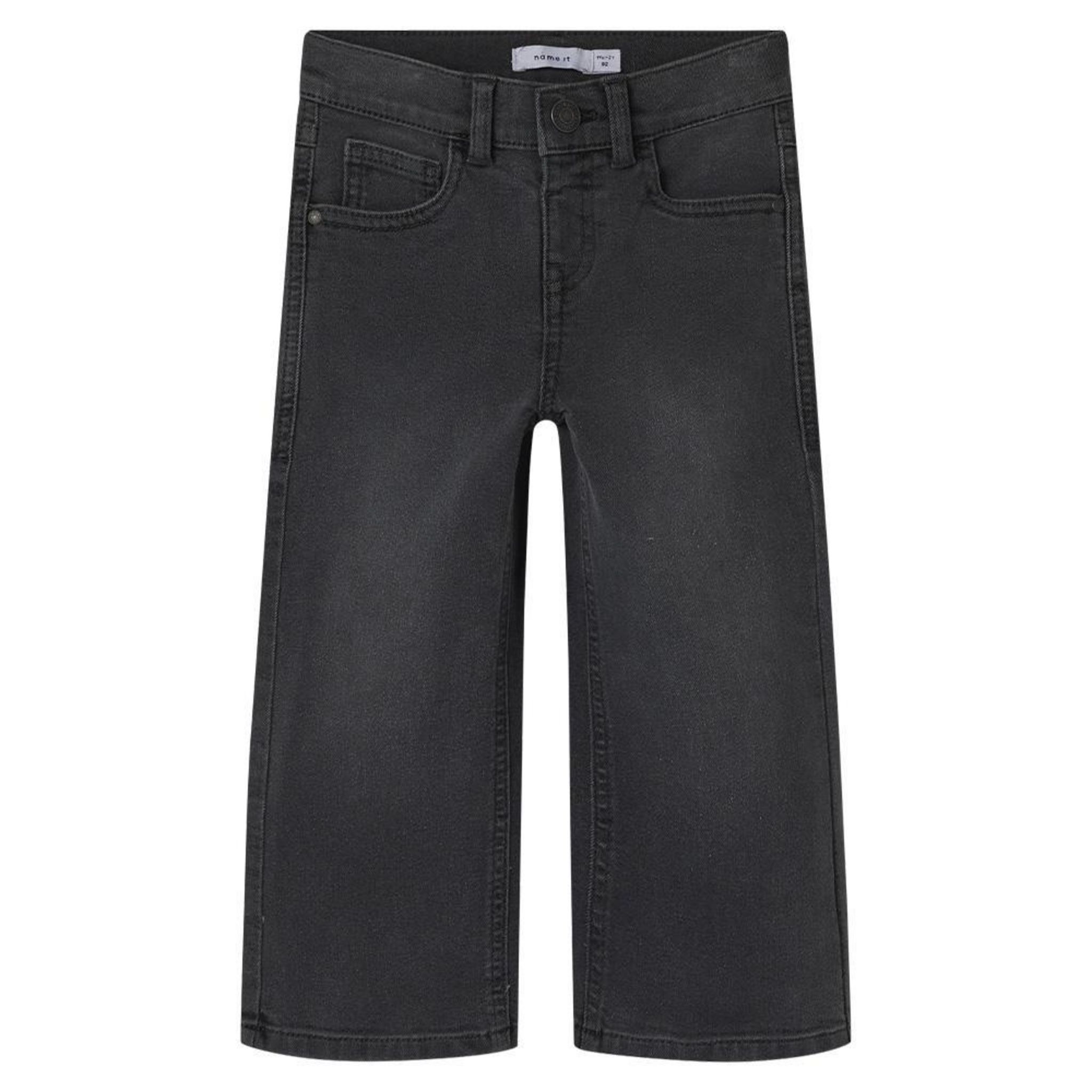 Optez pour ce jean Name it- Coloris : Noir- Coupe droite- Poches avant et arrière- Fermeture à bouton- Composition : 78 % polyester, 21 % polyester, 1 % élasthanne