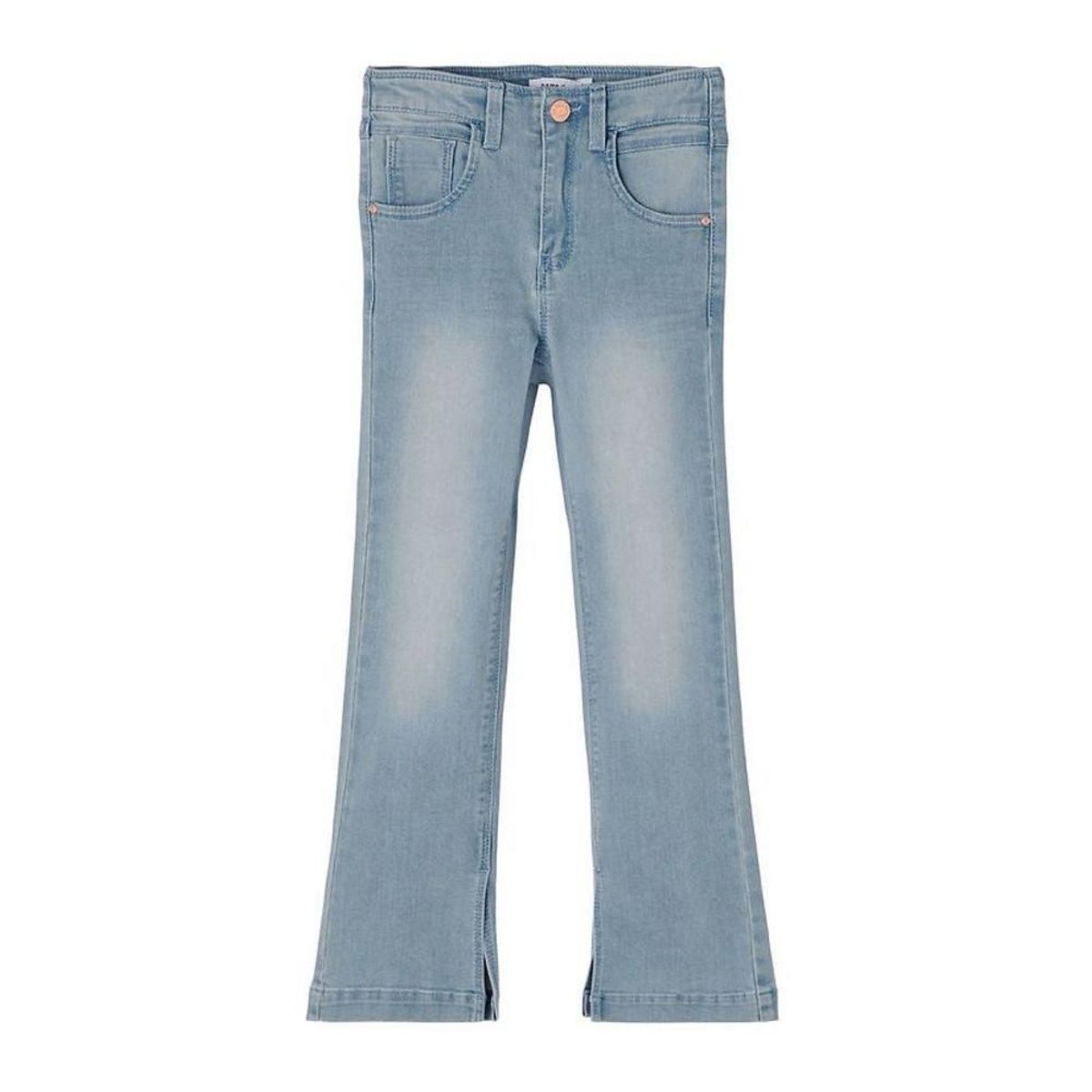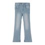 Craquez pour le jean tendance fille de la marque Name It Coupe Bootcut Taille réglable Plusieurs poches Coloris : Bleu Fendue sur le bas Composition : 77% coton bio , 22% polyester , 1% élasthanne