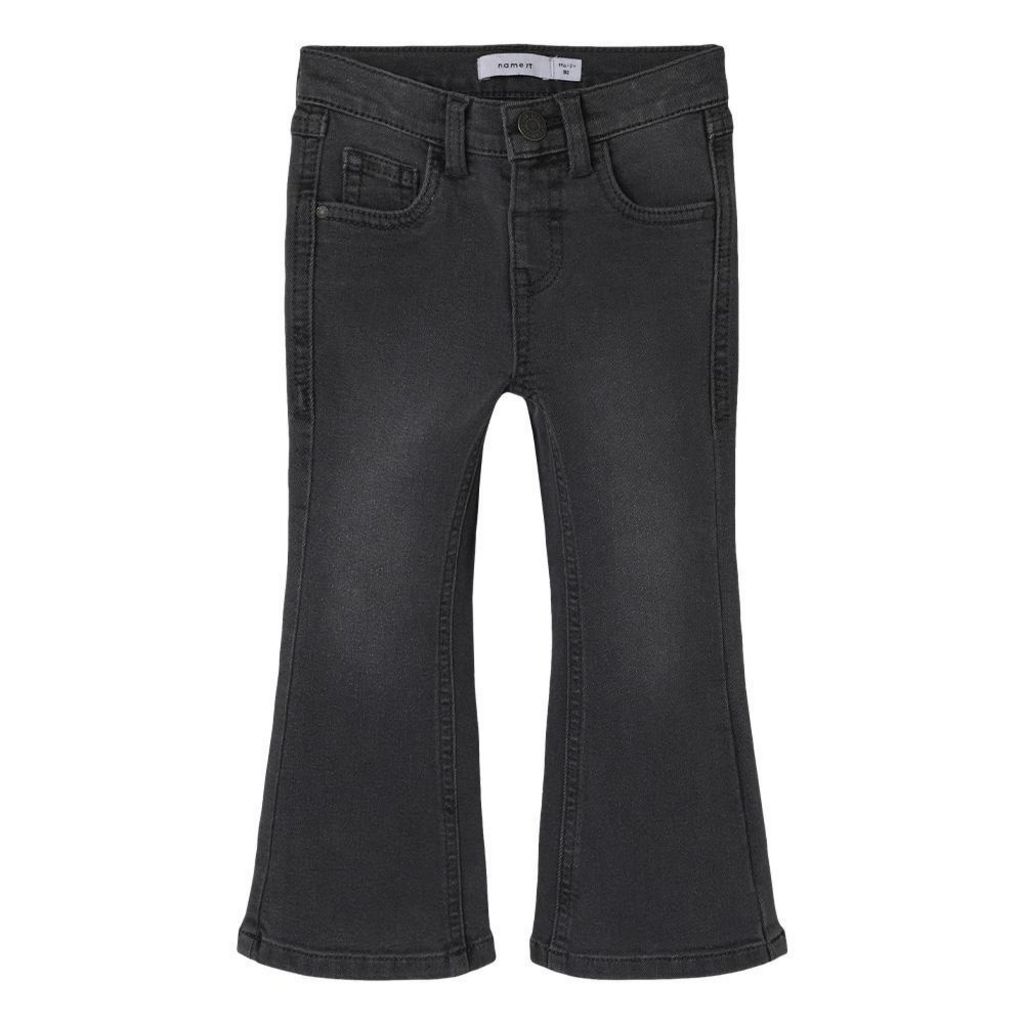 Optez pour ce jean Name itColoris : Noir Composition : 78% Coton, 21% Polyester recyclé, 1% ÉlasthanneCoupe bootcutBraguette zippée surmontée d'une agrafe et d'un bouton