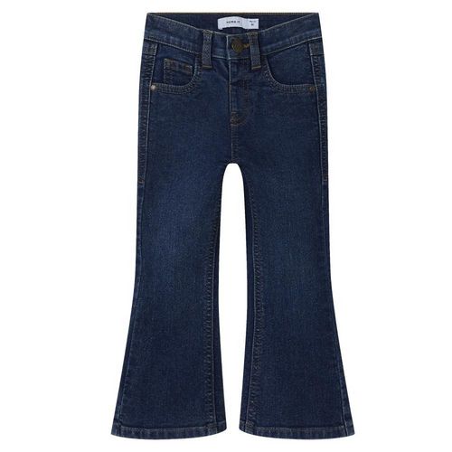 Optez pour ce jean Name itColoris : Bleu Composition : 78% Coton, 21% Polyester recyclé, 1% ÉlasthanneCoupe bootcutBraguette zippée surmontée d'une agrafe et d'un bouton