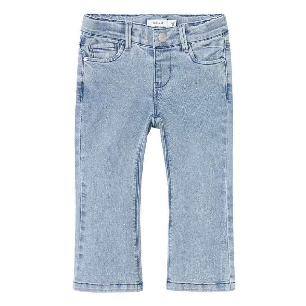 Optez pour ce jean Name it- Composition : 53% coton, 26% polyester, 20% coton - recyclé, 1% elastane- Coloris : Bleu- Bootcut fit- Passants pour ceinture