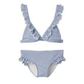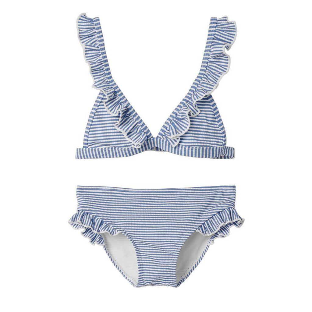 Maillot de Bain 2 pièces pour fille de la marque Name It !Brassière avec bretelles réglables Forme triangleCrochet de fermetureImprimé : RayuresColoris : Bleu/BlancComposition : 54% polyester , 41% polyamide , 5% élasthanne