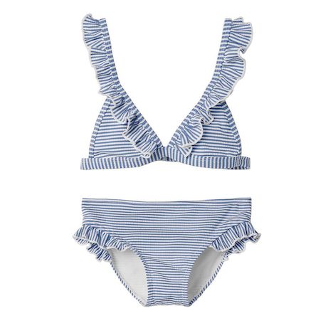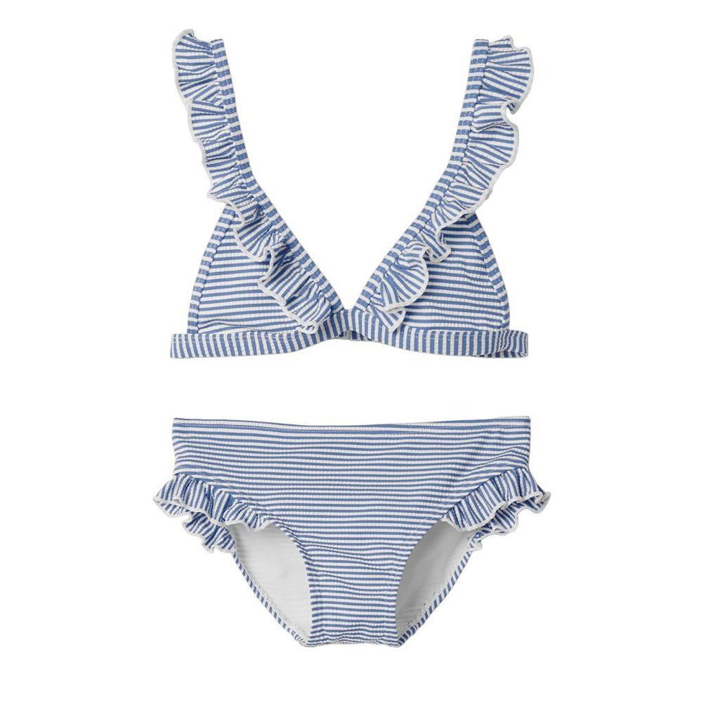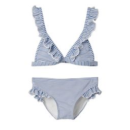 Maillot de Bain 2 pièces pour fille de la marque Name It !- Brassière avec bretelles réglables- Forme triangle- Crochet de fermeture- Imprimé : Rayures- Coloris : Bleu/Blanc- Composition : 54% polyester , 41% polyamide , 5% élasthanne
