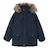 Optez pour ce manteau de la marque Name It ! Composition : 100% polyester Coloris : marine Capuche avec fourrure Fermeture éclair Manches longues