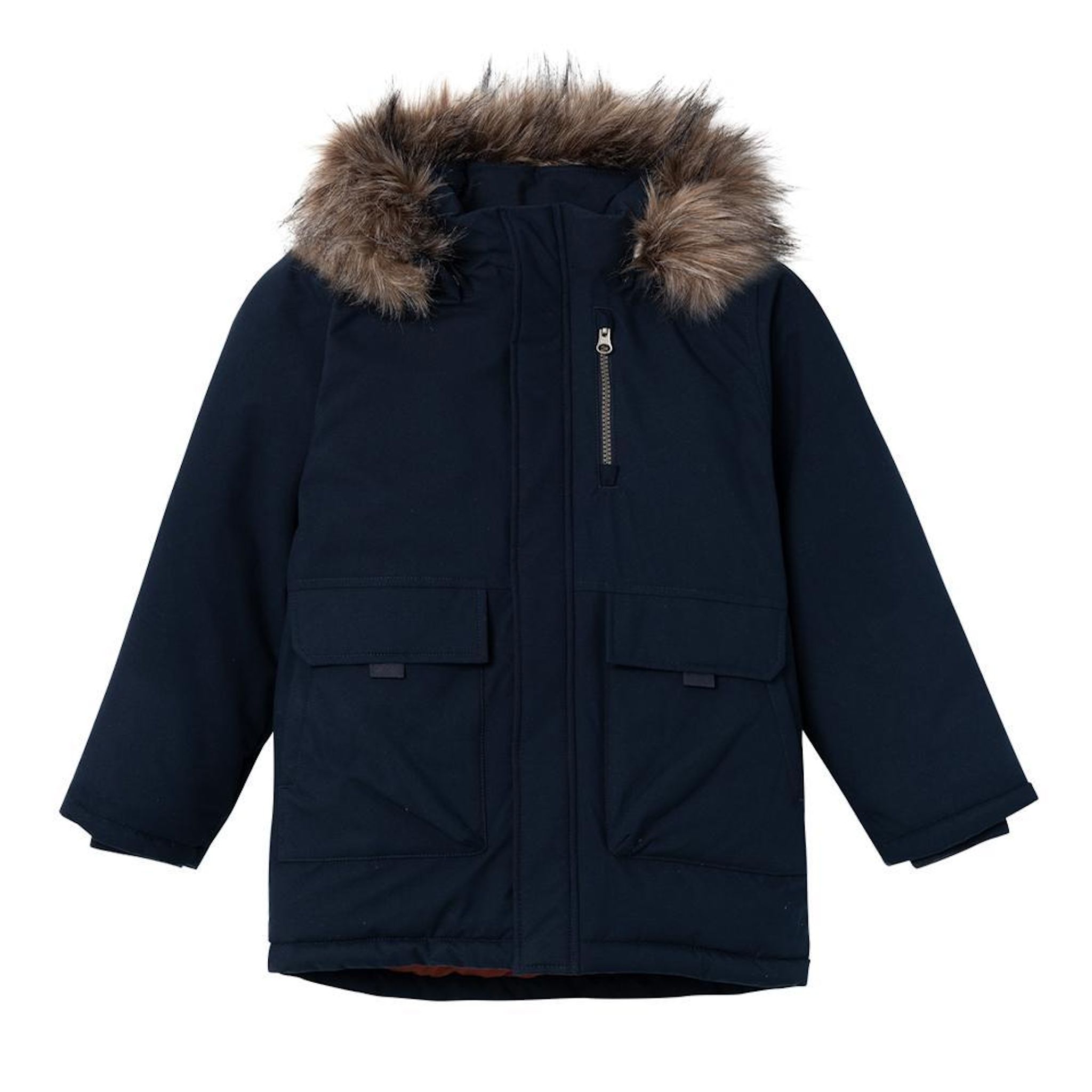Optez pour ce manteau Name itColoris : Marine Avec capucheManches longues1 poche zippée verticalement poitrine gauche, 2 poches latérales à rabatCapuche détachable en fausse fourrure beigeExtrémité des manches resserréeComposition : 100% Polyester