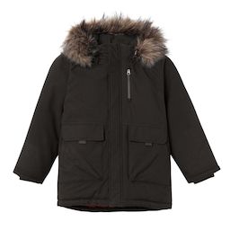 Optez pour ce manteau Name itColoris : Noir Avec capucheManches longues1 poche zippée verticalement poitrine gauche, 2 poches latérales à rabatCapuche détachable en fausse fourrure beigeExtrémité des manches resserréeComposition : 100% Polyester