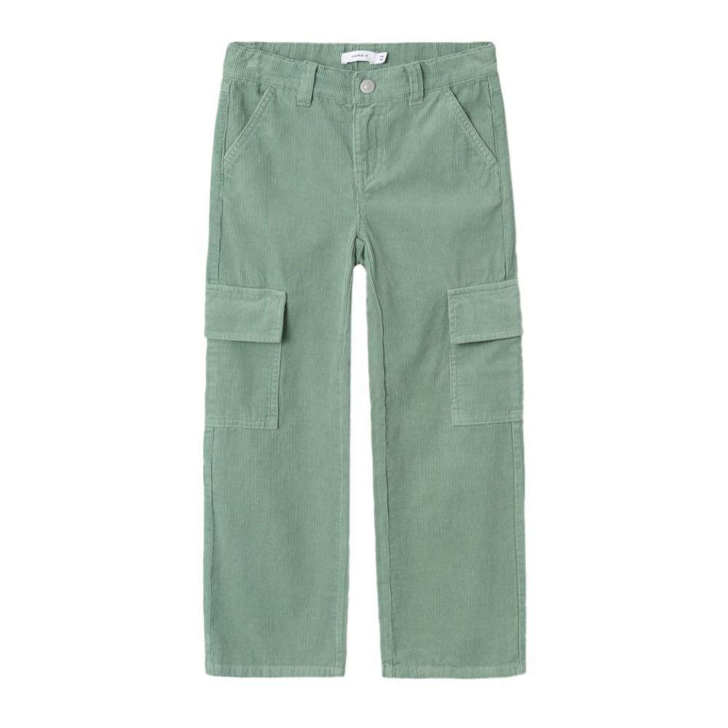 Optez pour ce pantalon Name itColoris : VertPoches latéralesPoches avantDétails supplémentairesTaille réglableComposition : 80 % coton, 20 % coton recyclé