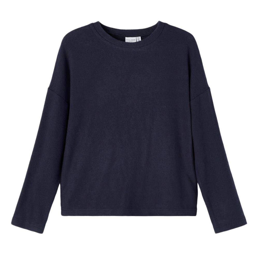 Pull fille de la marque Name It Manches longues Col rond Pull en maille Coloris : Marine Composition : 84% viscose , 14% polyester , 2% élasthanne