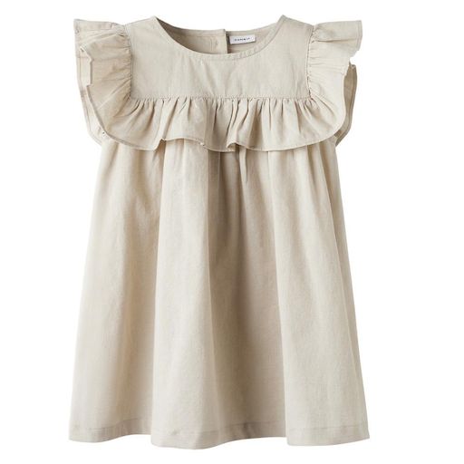 Optez pour cette robe Name it disponible à petit prix !- Coloris : Beige- Col rond- Sans manches- Composition : 80% coton, 20% lin