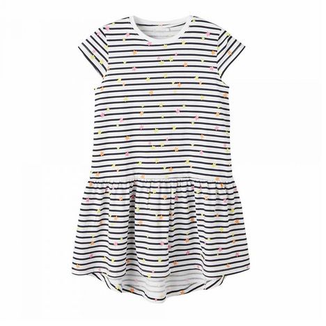 Craquez pour cette robe de la marque NAME IT ! Coloris : Blanc Motifs : Rayures Manches courtes Col rond Composition : 95% Coton, 5% Élasthanne