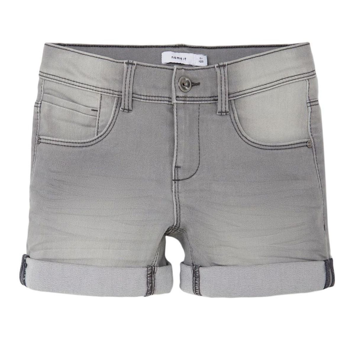 Craquez pour le short fille de la marque Name It Coupe slim Coloris : Gris Plusieurs poches Revers Composition : 77% coton , 22% polyester , 1% élasthanne