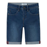 Optez pour le short garçon de la marque Name It !Coloris : Bleu foncé5 pochesTissu stretchTaille ajustable avec élastiqueCoupe slimComposition : 71% coton , 27% polyester , 2% élasthanne