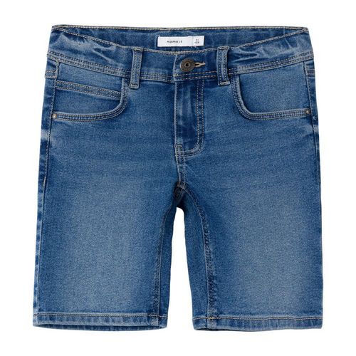 Optez pour le short garçon de la marque Name It !Coloris : Bleu5 pochesTissu stretchTaille ajustableCoupe regularComposition : 75% coton , 18% polyester , 6% viscose , 1% élasthanne