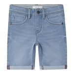 Optez pour le short garçon de la marque Name It !Coloris : Bleu5 pochesTissu stretchTaille ajustable avec élastiqueCoupe slimComposition : 71% coton , 27% polyester , 2% élasthanne