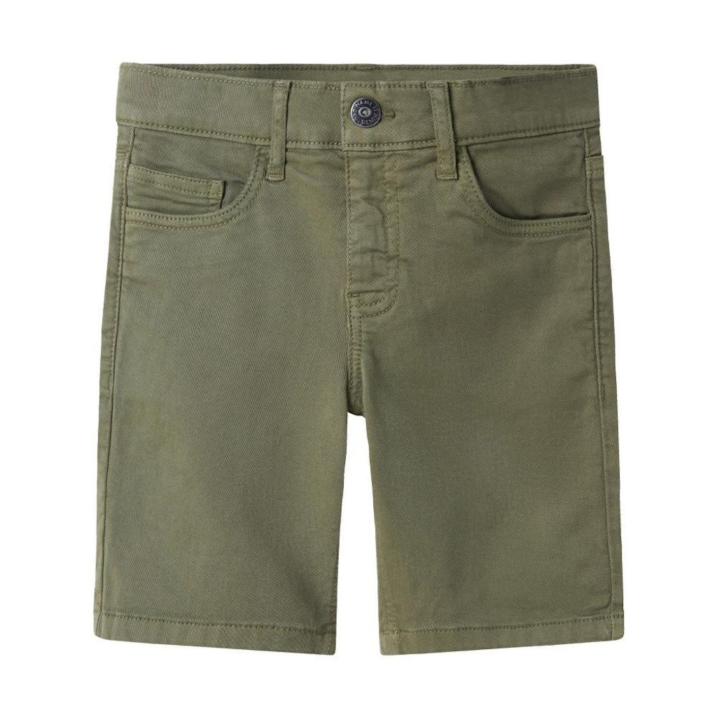Optez pour le short de la marque NAME IT à prix bas !- Coloris : Kaki- Braguette zippée surmontée d'une agrafe et d'un bouton- Ourlets à revers- Taille ajustable- 5 poches- Coupe slim- Composition : 98% Coton, 2% Élasthanne