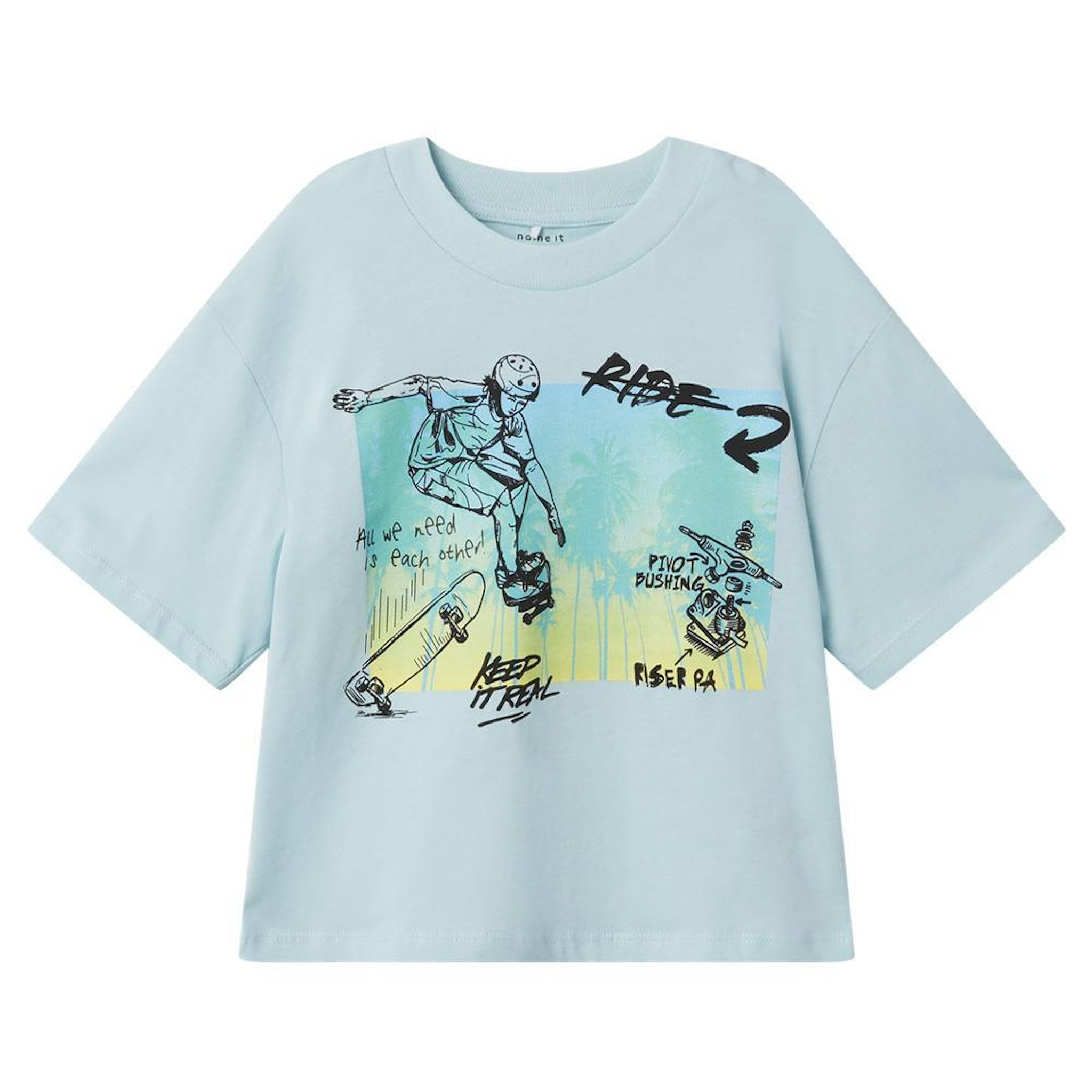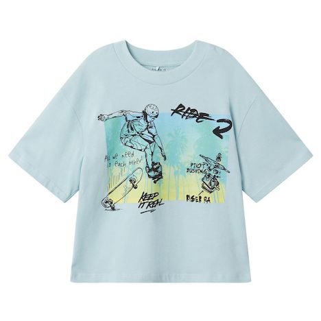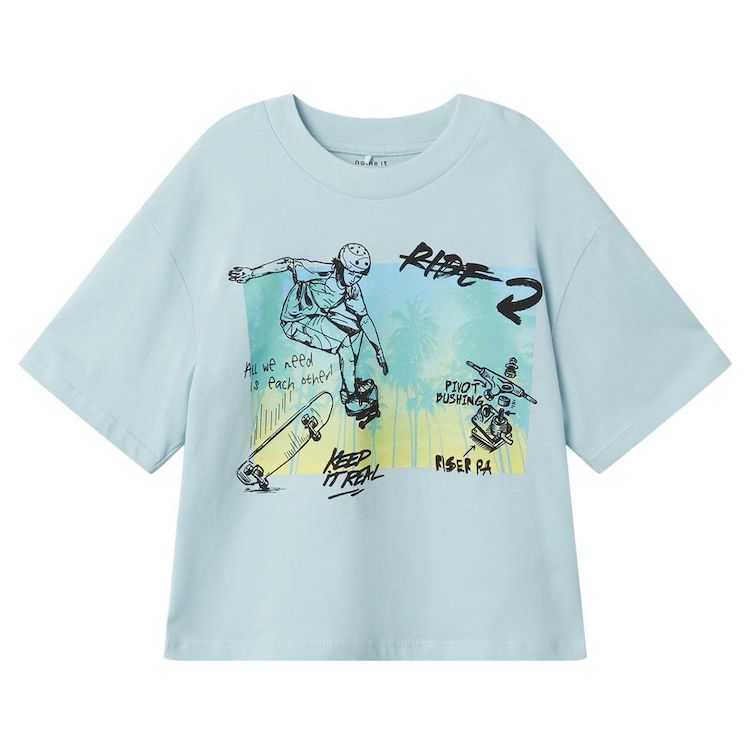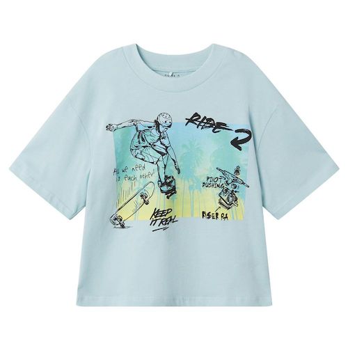 Optez pour ce t-shirt Name it disponible à petit prix !Coloris : Bleu Col rondManches courtesComposition : 100% coton