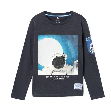 T-shirt garçon de la marque Name It !Manches longuesCol rondColoris : GrisImage sur l'avantComposition : 100% coton