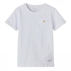 T-shirt garçon de la marque Name It Manches courtes avec ourlet Col rond Fausse poche sur la poitrine avec bouton Coloris : Blanc Composition : 100% coton bio