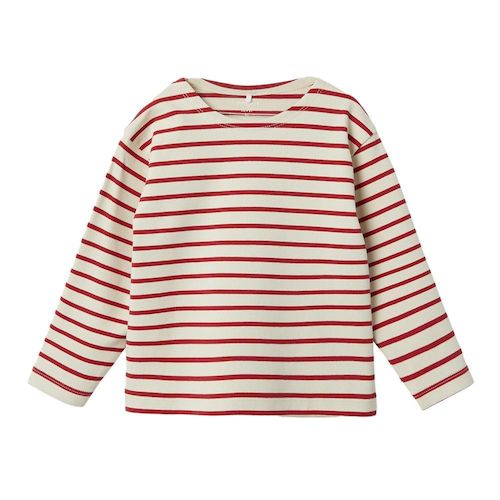 Optez pour ce t-shirt Name it disponible à petit prix !Coloris : Blanc/Rouge Col rondManches longuesComposition : 100% coton