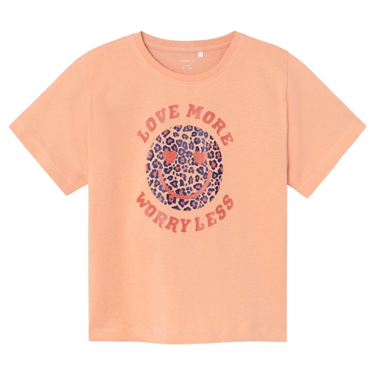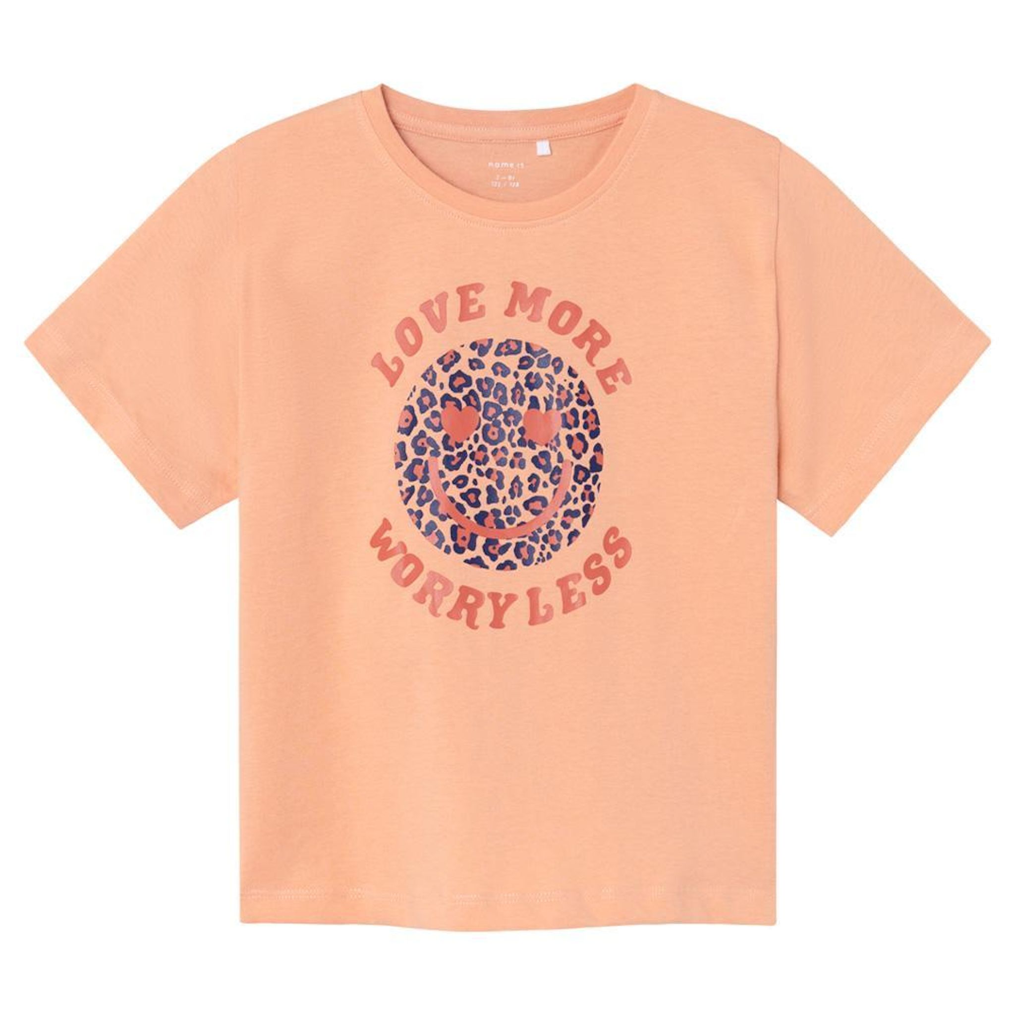 T-shirt fille Name It !- Col rond- Manches courtes- Coloris : Orange- Imprimé sur l'avant- Composition : 100% coton