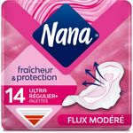 Serviettes hygiéniques Nana Ultra Normal Plus x14 Serviettes Hygièniques Nana Normal Plus. Notre serviette Securefit est conçue pour vous offrir à la fois un confort optimal et une incroyable protection. Nous avons associé sa forme spécifique conçue pour épouser vos courbes à une triple protection intégrée pour que vous vous sentiez capable de tout ! Avec ailettes