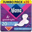 Des serviettes hygiéniques idéales pour la nuit. Notre serviette Securefit est conçue pour vous offrir à la fois un confort optimal et une incroyable protection. Nous avons associé sa forme spécifique conçue pour épouser vos courbes à une triple protection intégrée pour que vous vous sentiez capable de tout! - Forme différenciée à l'avant et à l'arrière pour épouser vos courbes - Barrières intégrales - Coeur conçu pour une absorption rapide - Murs anti-fuites - Plus longue pour la nuit Serviettes hygiéniques Nana Ultra Goodnight Jumbo Pack x20
