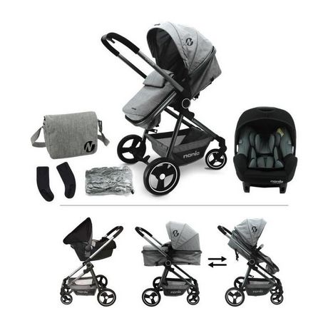 - Conception polyvalente : Poussette 3 en 1 avec nacelle et siège assis.