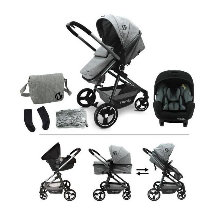 Poussette combinée 3 en 1 NANIA GIULIA + Siege auto BEONE EVO R129 40-85 cm - Nacelle de 0 a 6 mois