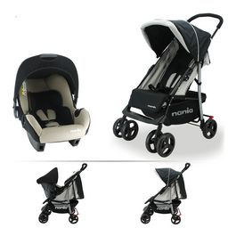 Nania vous présente cette poussette combinée duo Texas avec son siège auto Beone groupe +. Une poussette combinée parfaite pour la naissance de bébé qui comprend la poussette Texas de Nania et un siège auto Beone groupe 0+ qui se clipse sur la poussette et qui est homologué selon la norme ECE R44/04 pour les trajets en voiture. La poussette TEXAS est une poussette maniable et très pratique, elle se plie et se déplie facilement, elle a un dossier inclinable, elle dispose d'un grand panier de rangement et d'un canopy amovible pour protéger bébé du soleil. Le siège auto Beone est une coque groupe 0+ pour les bébés dès la naissance jusque 13 kg. C'est un siège auto qui assure sécurité et confort à bébé, il a été récompensé de 4 étoiles aux tests ADAC. Le siège auto est équipé d'un harnais 5 points avec réglage centralisé, d'un canopy amovible et d'une poignée de transport. Le siège auto Beone dispose de réducteurs nouveau-né pour un grand confort.