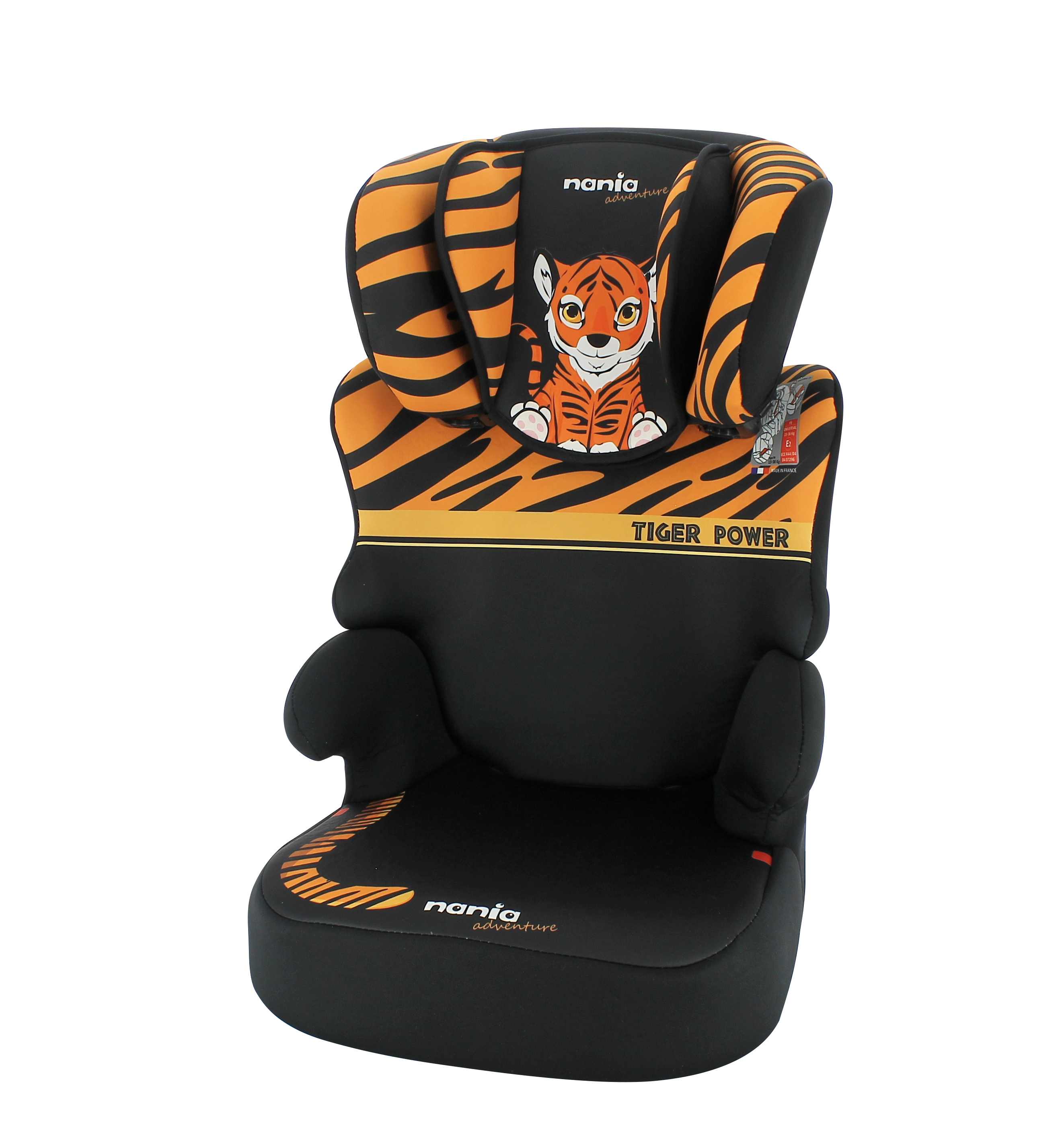 Nania a conçu pour vos trajets en voiture avec vos enfants ce rehausseur groupe 2/3 Befix Tiger. Utilisable de 15 à 36 kg, ce rehausseur est fabriqué et testé en France et homologué selon la norme ECE R44/04. C'est un rehausseur enfant avec dossier sans harnais qui se positionne uniquement face à la route à l'arrière du véhicule. L'enfant est maintenu directement avec la ceinture de sécurité 3 points. C'est un rehausseur évolutif qui s'adapte à la morphologie de l'enfant avec la têtière réglable en hauteur et amovible. C'est un rehausseur très sécuritaire, qui a été récompensé de 4 étoiles aux tests ADAC.