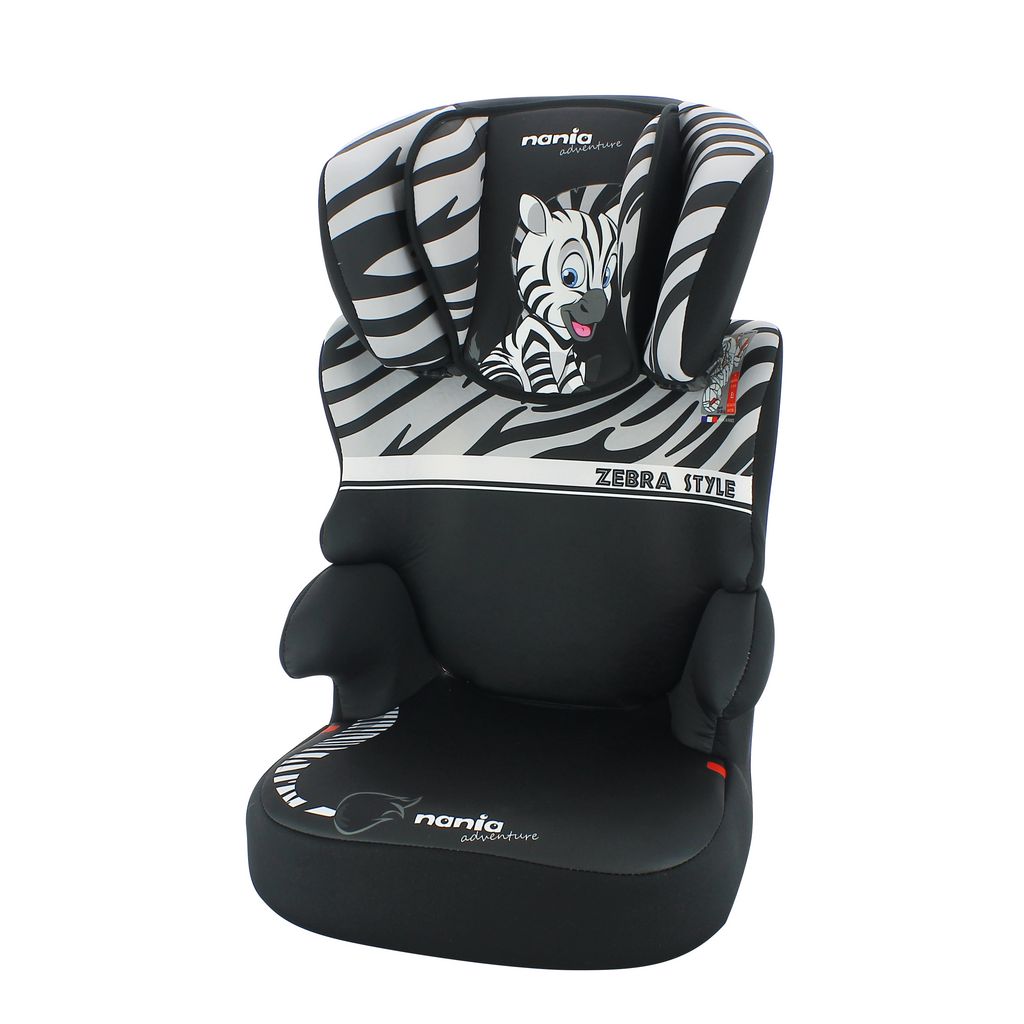 Pour vos trajets en voiture avec vos enfants, Nania vous propose le rehausseur auto groupe 2/3 Befix Zebra. Ultra sécuritaire, ce rehausseur est équipé de protections latérales de sécurité en cas de choc pour protégé votre enfant. Il se fixe à l'aide de la ceinture de sécurité du véhicule. Evolutif, il s'adapte à la croissance de votre enfant grâce à sa têtière réglable en hauteur. C'est un rehausseur enfant avec dossier sans harnais qui se positionne uniquement face à la route à l'arrière du véhicule. Ce rehausseur auto Befix Zebra a été récompensé de 4 étoiles aux tests ADAC. Il est fabriqué et testé en France et répond à la norme ECE R44/04.