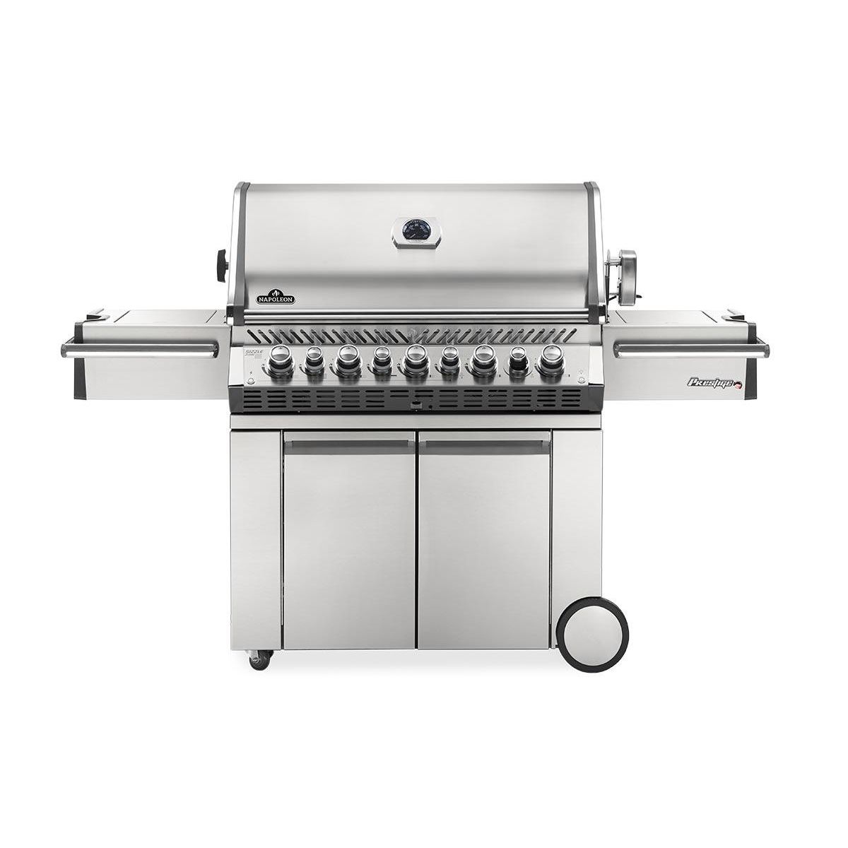 Barbecue à gaz Napoléon Prestige Pro 665 RSIB avec 5 brûleurs et 2 brûleurs infrarouges (arrière pour les rôtis et un brûleur latéral Sizzle Zone™)De niveau professionnel, le barbecue à gaz haut de gamme Napoléon Prestige Pro 665 RSIB est équipé de 6 brûleurs, d'un brûleur arrière infrarouge et d'un