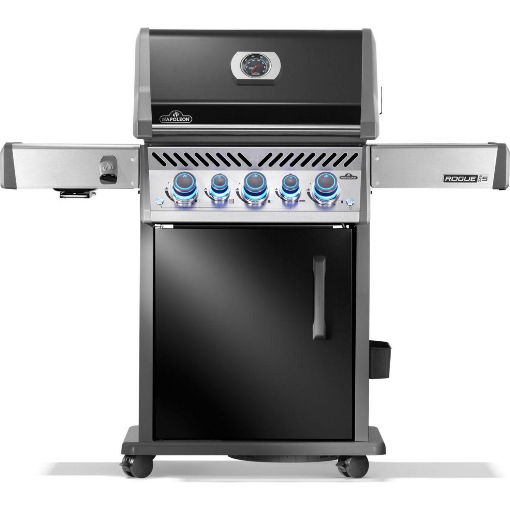 Barbecue gaz Rogue RPS425RSIBPK2FRR noir 5 bruleurs sur chariot, 60x45 cm bruleurs latéral et arrière infrarouge