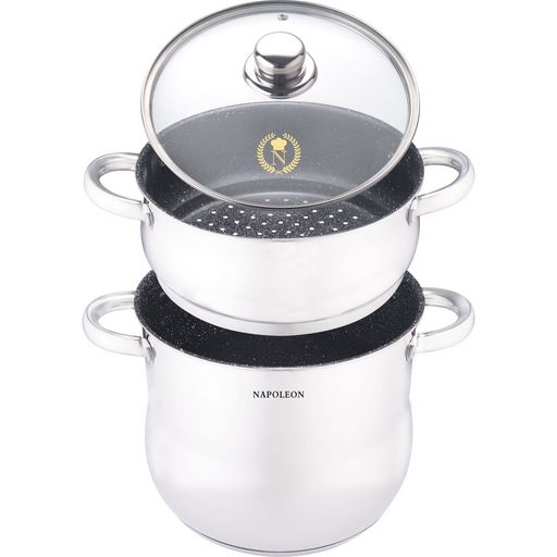 Quittant le gaz pour l'induction j'ai dû changer mon couscoussier en aluminium. Le produit Auchan est magnifique, l'inox semble de qualité et le revêtement intérieur anti-attachement très efficace. Toutefois les trous du panier supérieur sont un peu gros ce qui laisse filtrer un peu de semoule dans la garniture. Pour le reste tout est parfait, j'en suis très satisfait.