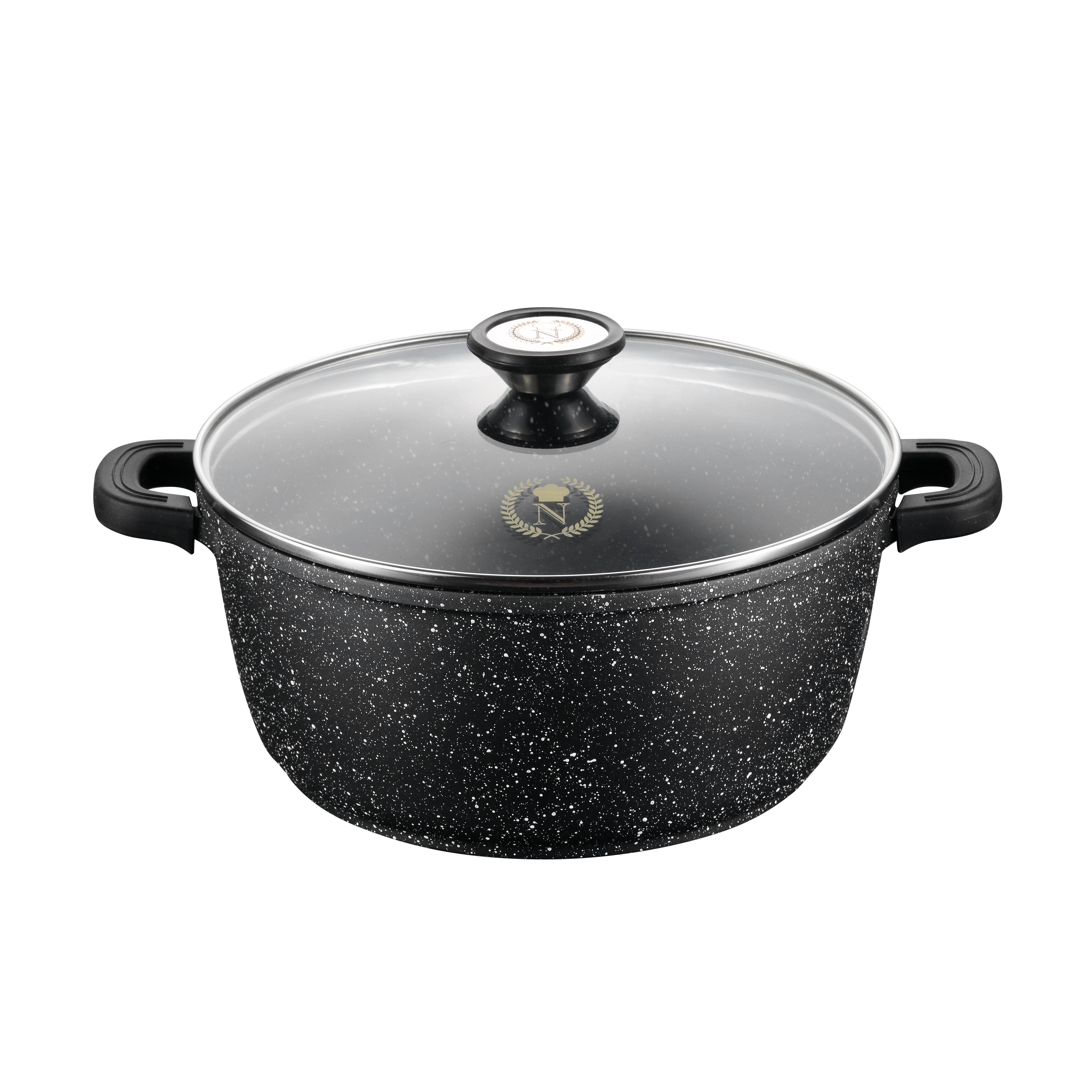 Découvrez le faitout 24 cm Napoléon avec couvercle en verre et maniques en silicone amovibles, idéal pour tous types de feux, y compris l'induction. Avec une capacité de 4,5L, ce faitout effet pierre offre une grande polyvalence et est compatible avec le lave-vaisselle pour un entretien facile. Ses